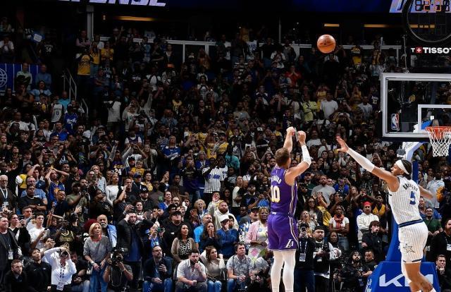 決勝時刻,雷迪克將肯納德留在場上,斯瑪特發球,然後場上是肯納德和湖人三巨頭東契奇、詹姆斯和裡夫斯。魔術球員緊緊盯防東詹裡,卻將本賽季三分命中率聯盟第一的肯納德忘瞭個幹凈。肯納德跑到三分線外,斯瑪特將球傳瞭過來,後者出手三分完成絕殺。值得一提的是,肯納德在跑到三分線外準備接球前,竟然還調整瞭一下自己的護臂,讓自己處在最舒服的出手方式中。這就是頂級射手的修養,重視每一個細節。