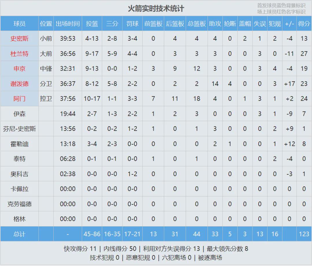 杜兰特出生于1988年9月29日,37岁还能保持稳定输出,已经非常罕见了。最后看看数据,你觉得火箭能在季后赛走多远?