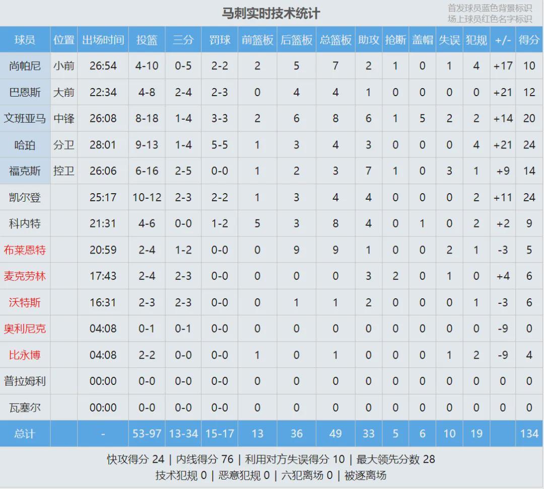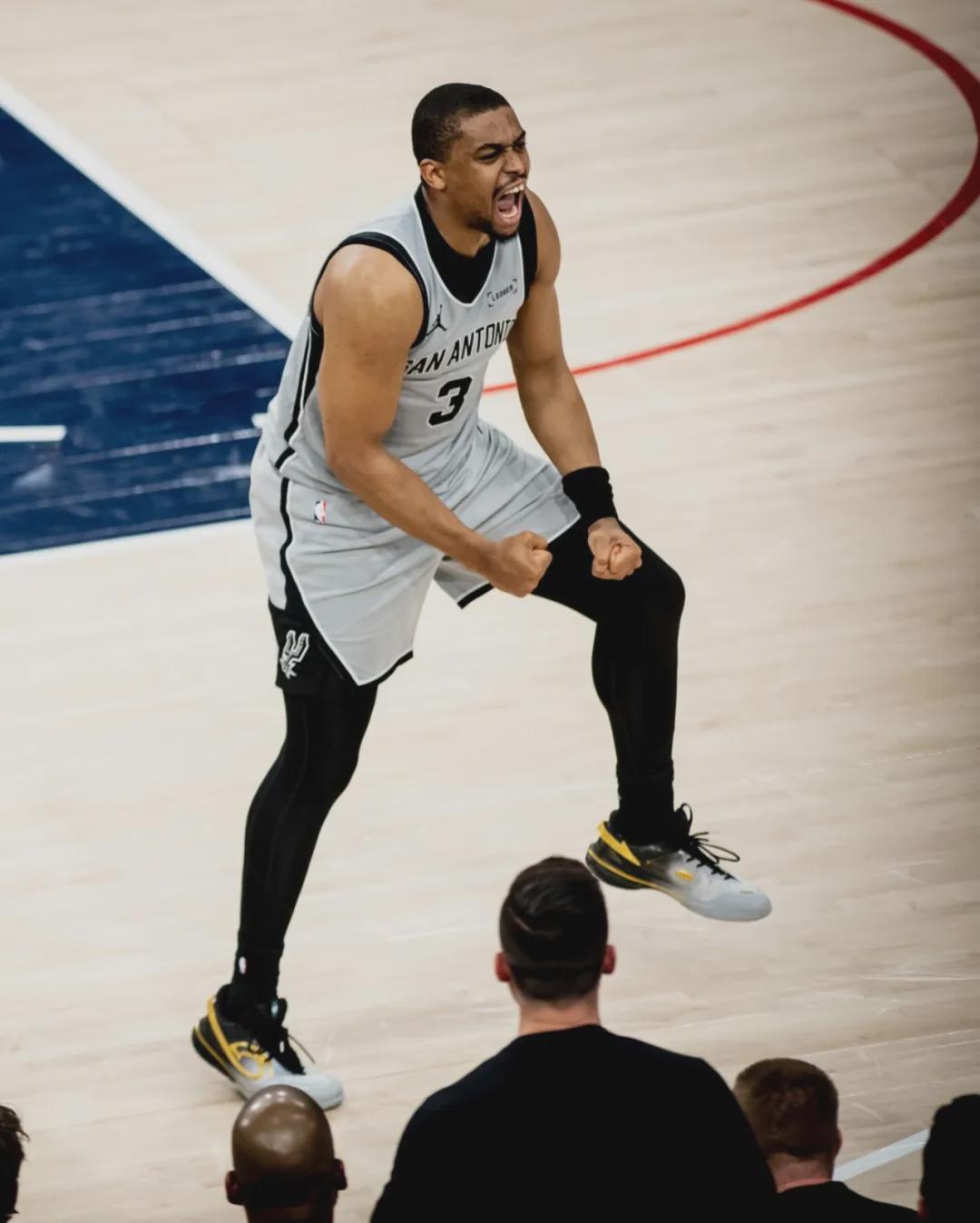 文班亚马出战26分钟,18投8中,三分4中1,罚球3中3,砍下20分8板6助5帽,正负值+14。咱们写的不是文班,而是马刺队魂凯尔登-约翰逊:替补出战25分钟,12投10中,三分3中2,罚球2中2,砍下24分4板4助,正负值+11。