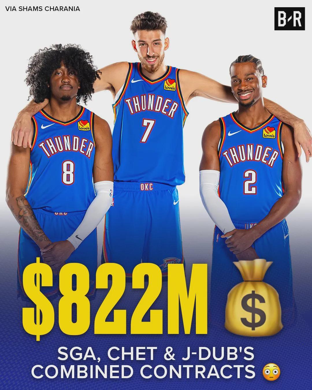 之前也有不少球迷问,雷霆啥时候拆队?杰威跟切特的大合同,都是从2026-27赛季开始生效。亚历山大新合同4年2.85亿美元,2027-28赛季开始生效。今年季后赛和明年季后赛,如果雷霆表现不及预期,2027年夏天大概率拆队!