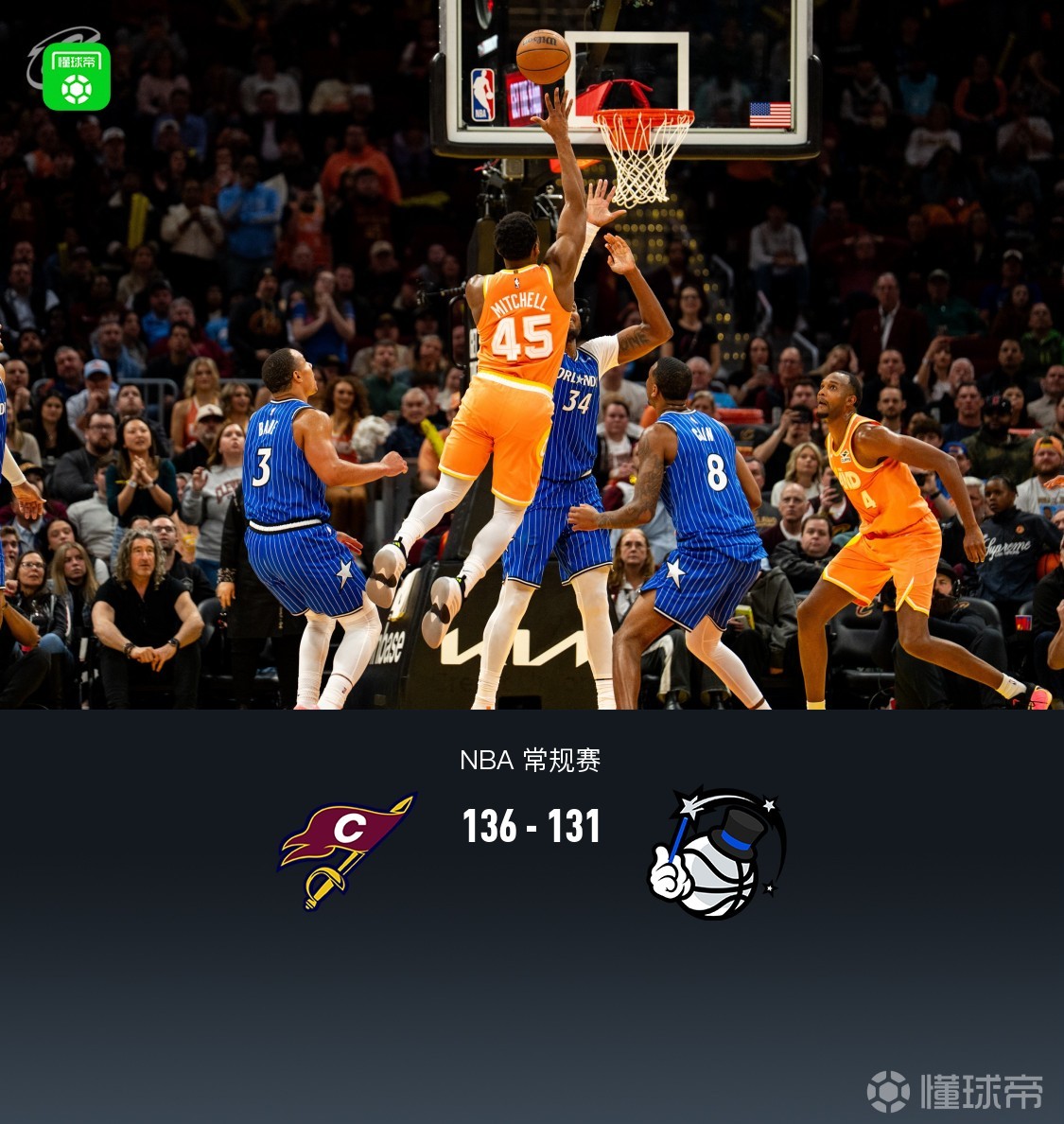 北京时间3月25日NBA 常规赛,克利夫兰骑士对阵奥兰多魔术。半场骑士72-68魔术,最终骑士134-131魔术。