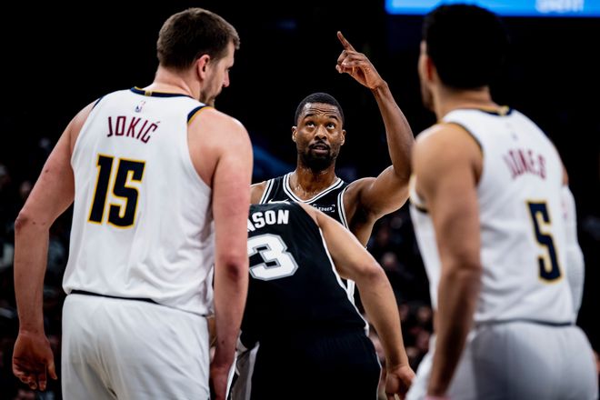 馬刺隊的文班亞馬因傷缺席。主場出賽的馬刺隊開局不錯,瓦塞爾和福克斯各進三分,他們率隊以10-5領先。約基奇和穆雷追回5分,尚帕尼和瓦塞爾分別投中三分,卡斯爾兩罰全中,馬刺隊鞏固領先位置。約基奇發力連得6分把差距縮小到1分,馬刺隊進攻多點開花,他們又打出8-1的小高潮再次拉開。佈朗突破得手,佈萊恩特連得6分結束首節,馬刺隊以37-25領先12分。