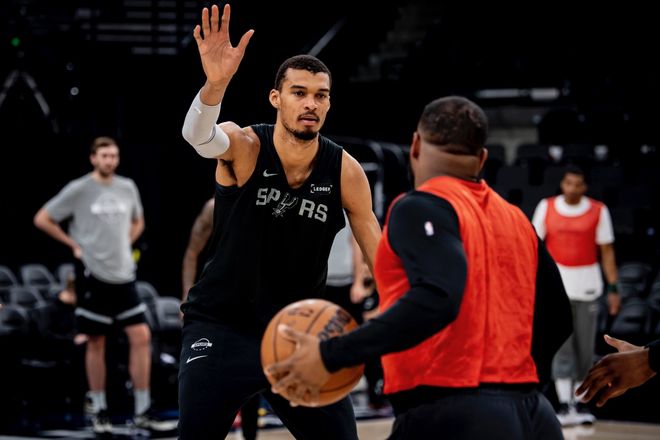 馬刺隊首發陣容:福克斯、卡斯爾、瓦塞爾、尚帕尼、文班亞馬