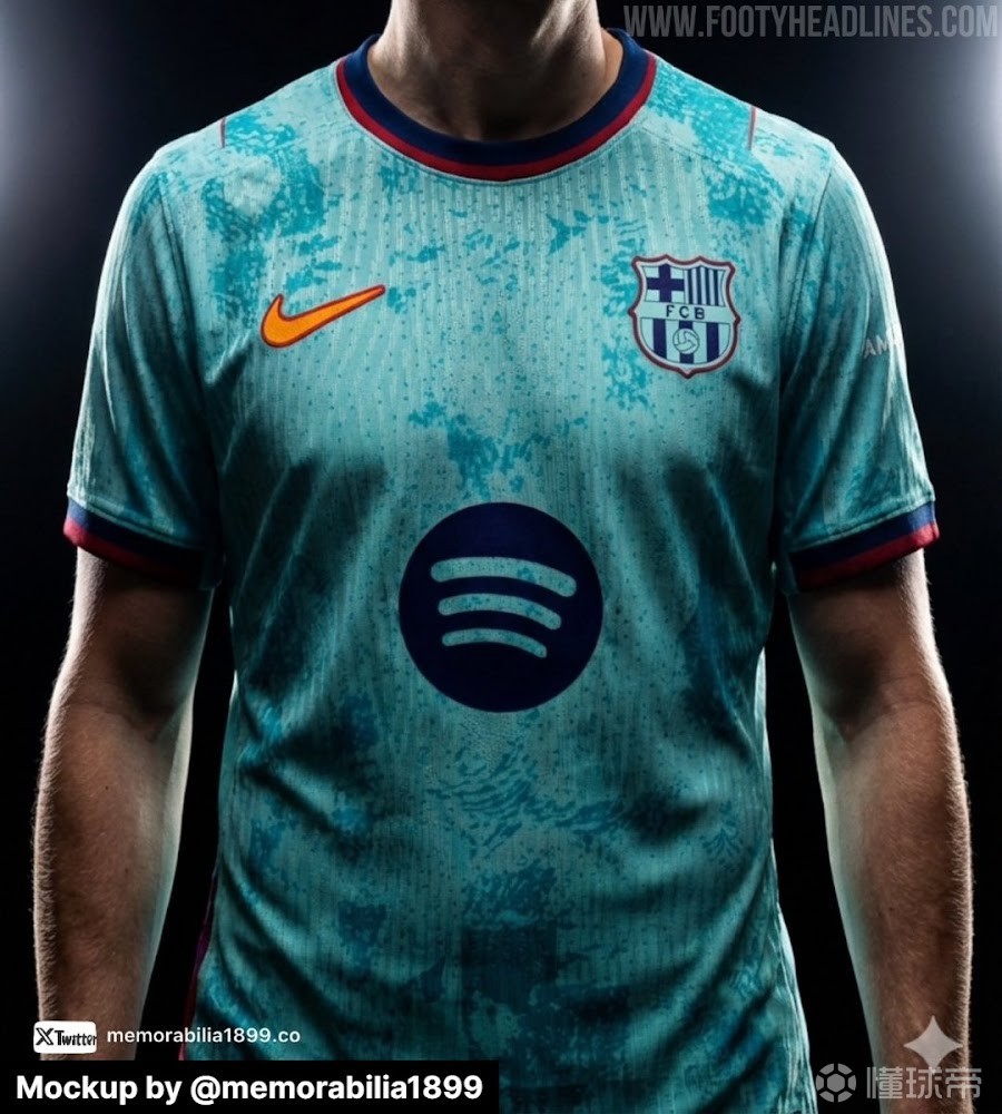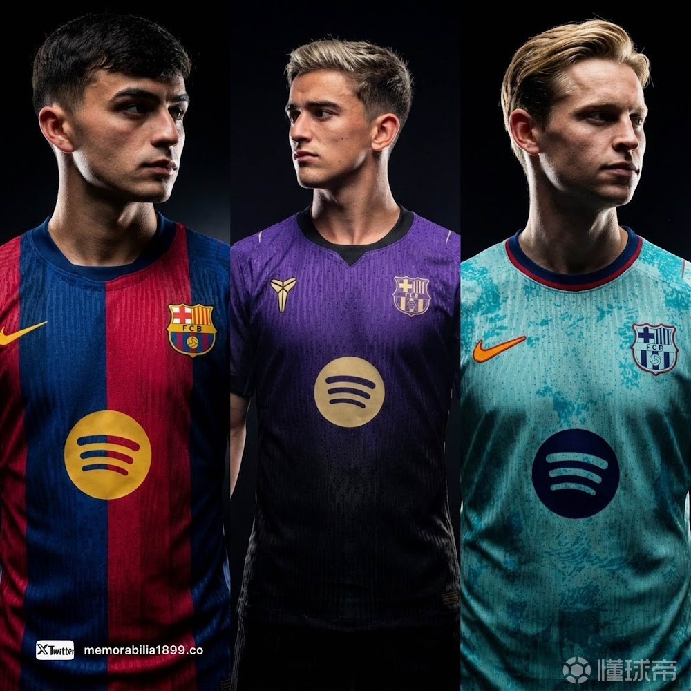 3月31日,知名足球装备网站Footy Headlines泄露了巴萨下赛季的三套球衣,主场依旧为经典红蓝配色,客场紫金致敬湖人,第三球衣将重新启用薄荷绿,此前该颜色已缺席数个赛季。