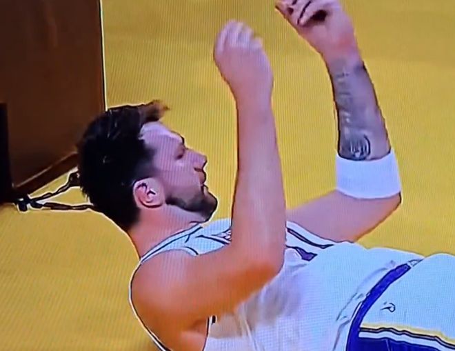 事件發生在周一湖人戰勝紐約尼克斯的比賽第三節。當時東契奇被尼克斯後衛沙梅特搶斷,隨後在快攻中試圖造迪亞瓦拉進攻犯規,卻被吹罰阻擋犯規。他躺在地上時,盯著裁判做出瞭手指搓動的“數錢手勢”。