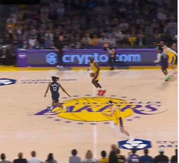 第一节刚开始没多久,湖人在防守端成功拦下对手,随即掀起快攻。老詹先是把球分给了里夫斯,结果这位老哥快攻中差点翻车把球给弄丢了!好在里夫斯一顿手忙脚乱把球重新控制住,紧接着就是一个轻巧的向上抛传——四届MVP得主詹姆斯心领神会,高高跃起,用一记势大力沉的空中接力暴扣狠狠终结了回合。