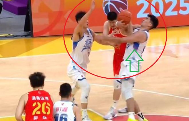 廣廈隊球員胡金秋,在接到隊友的傳球,剛想要發動進攻,然而,就在這個時候,寧波隊兩名球員對胡金秋進行包夾,我們可以看到,寧波隊中鋒魯吐佈拉,從胡金秋的身後沖過來,二話不說,就與胡金秋糾纏在一起。