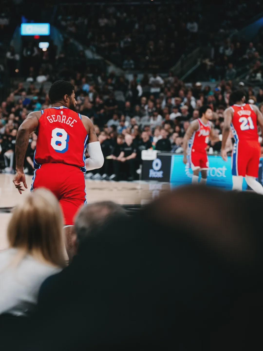 马刺本场首发: 福克斯、卡斯尔、瓦塞尔、尚帕尼、文班亚马。76人首发:马克西、埃奇库姆、乌布雷、乔治、恩比德。乔治状态不错,最近6场比赛场均25.8分6.5板4助3断,三分命中率44.1%。今天第一节,乔治6中4砍下11分!