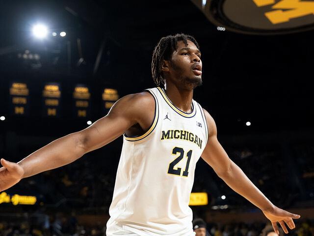 内线方面,密歇根的禁区推土机莫雷兹·约翰逊二世(Morez Johnson Jr.)同样引人关注。 他的行情目前稳定在首轮末的第26顺位左右,NBA模板非常贴近小温德尔·卡特。作为球队的蓝领苦力兼内线保镖,约翰逊在疯三期间场均能啃下12.8分和10.5个篮板。到了总决赛这种拼刺刀的肉搏战,他更是如鱼得水,全场揽下12分和10个篮板,外加2次盖帽。他在篮下干脏活累活完全不怵康州的肌肉棒子,生生抢爆了对手的禁区。在这个强调护框和吃饼的小球时代,这种不占球权、干活不挑肥拣瘦的经济适用男,绝对是各路球队总经理的心头好。