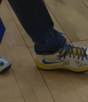 这表现绝对是复古级别的!有趣的是,这场比赛詹姆斯的经典签名鞋Nike LeBron X也来到了现场,但穿它的却不是老詹本人,而是因为伤病管理坐在场下轮休的斯蒂芬·库里。