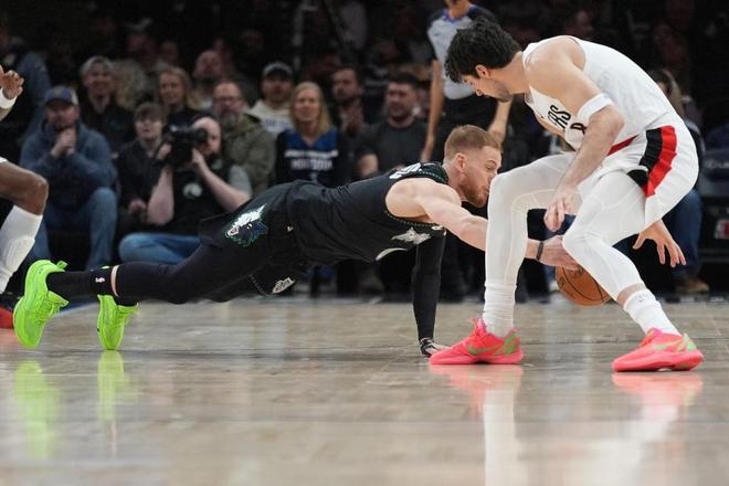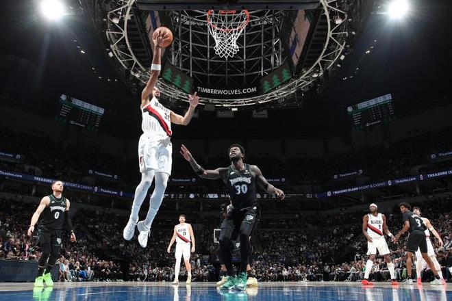 開拓者過去兩場連贏籃網與步行者收獲2連勝,森林狼過去兩場連贏太陽與爵士收獲2連勝,本賽季前三次交鋒森林狼均戰勝開拓者。本場森林狼缺少愛德華茲與裡德,開拓者缺少楊瀚森、夏普與利拉德,楊瀚森本場是第36場缺席NBA比賽。首節雙方內線接連得分,迪文琴佐連續三分命中,但開拓者內外開花保持領先優勢,首節比賽結束開拓者33-28領先森林狼。