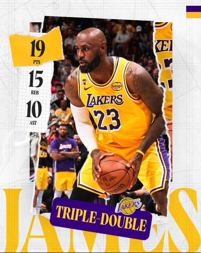 41歲的勒佈朗雖然隻是贏球的第二功臣,可他全場比賽僅12次出手命中8個拿到19分15籃板10助攻,命中率高達66.7%,詹姆斯以41歲的高齡再度拿到瞭三雙。
