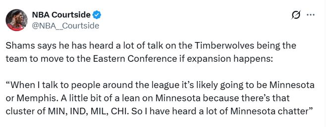Shams:NBA擴軍提案大概率會通過 森林狼最有可能被劃到東部