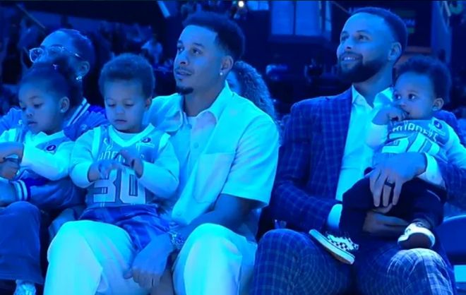 如今黃蜂主場為戴爾-庫裡舉辦30號球衣退役儀式,庫裡全傢人到場見證父親的榮耀時刻,見證30號球衣冉冉升空,並且全傢一起合影留念。