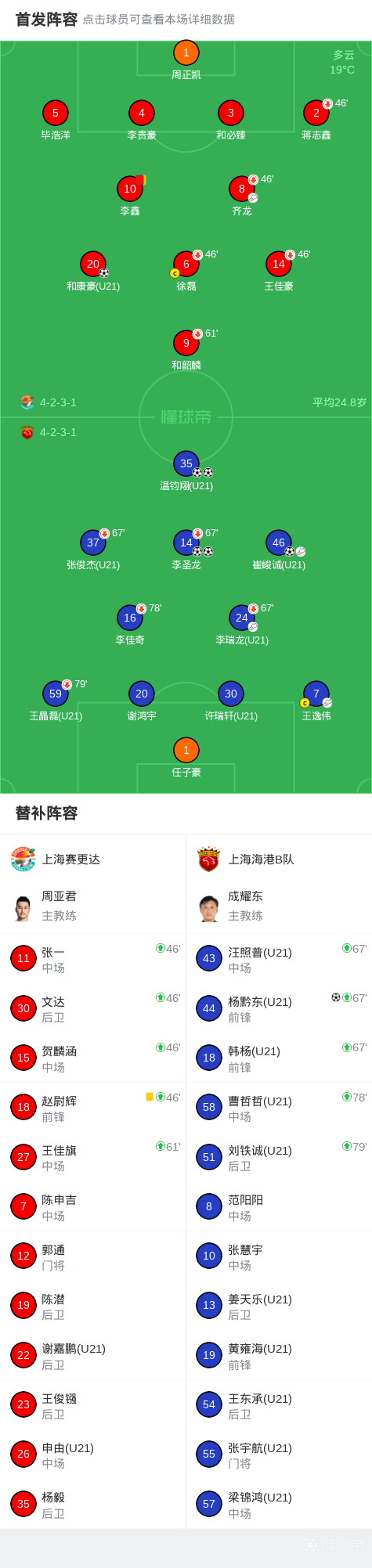 第20分钟,温钧翔轰出世界波完成双响,上海海港B队2-1上海赛更达