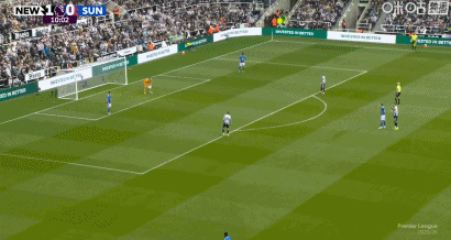 第10分钟,奥尼安出球失误,安东尼-戈登得球冷静摆脱破门,纽卡1-0!