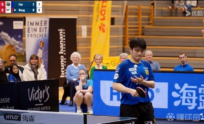 第一盘,樊振东 3-0 孟庆宇(12-10,11-5,11-8)