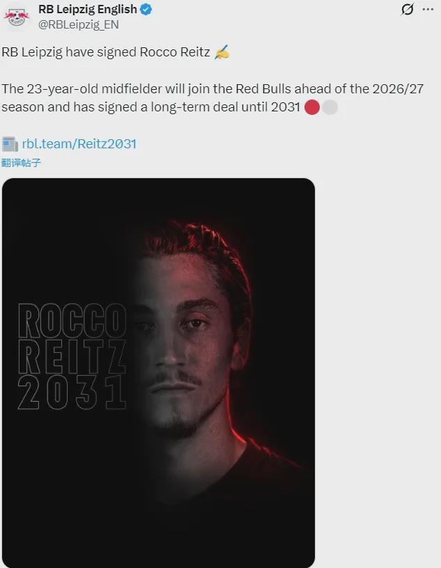 官方:莱比锡红牛宣布和门兴格拉德巴赫就罗科-赖茨的转会达成了协议,这名23岁的中场将在今年夏天正式完成转会,并且他将签下一份2031年到期的合同。