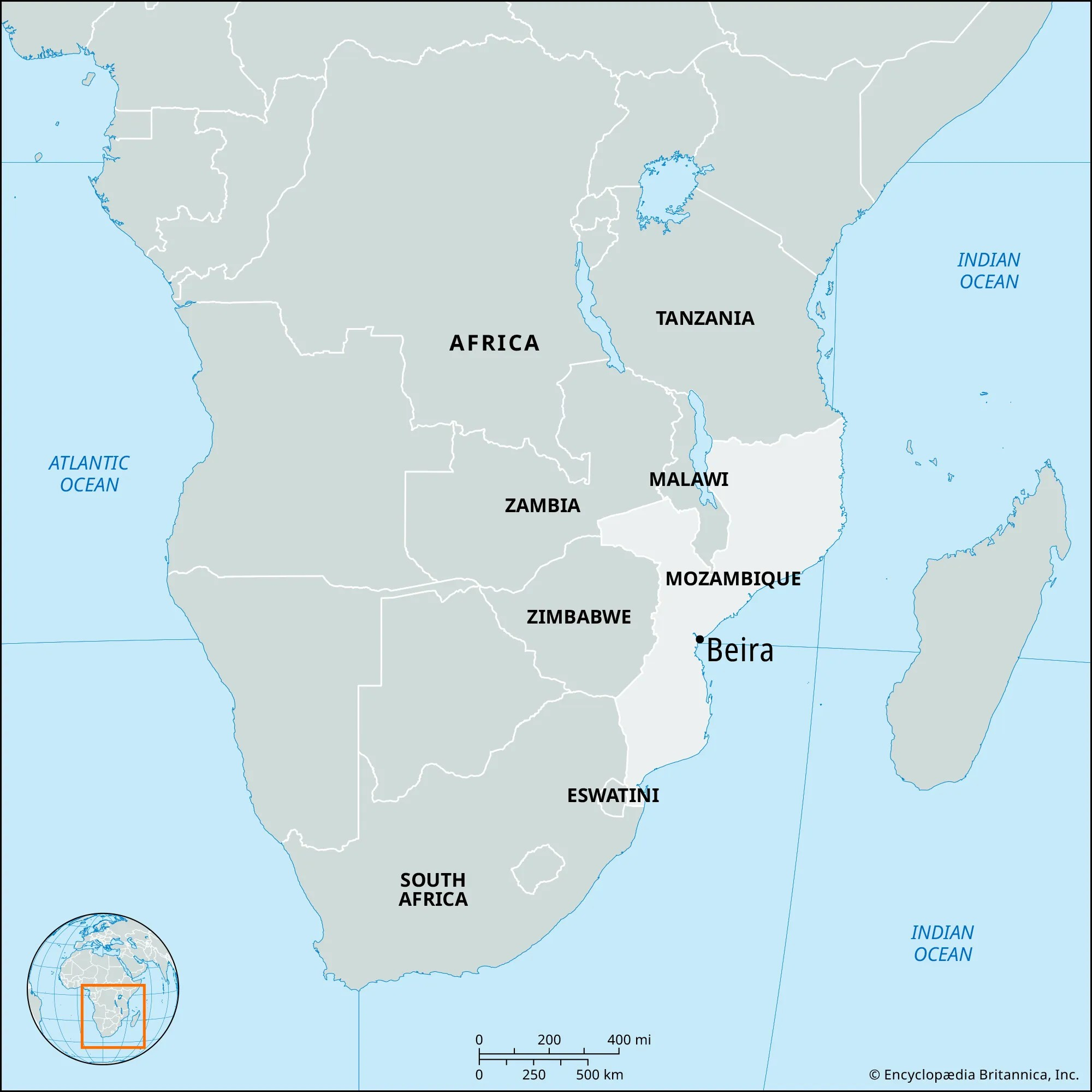 莫桑比克位于印度洋西岸,港口城市贝拉位于其东部海区域