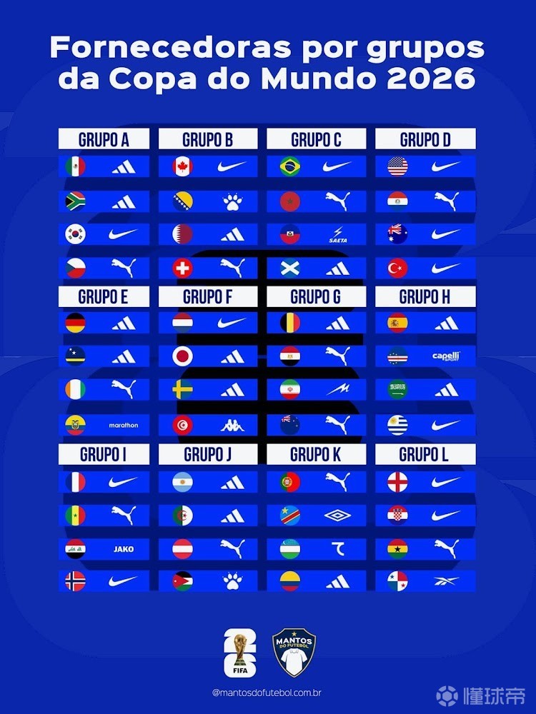 随着附加赛结束,48支参赛球队的完整名单已经正式确认。届时,三大品牌将几乎完全主导赛场球衣市场格局。