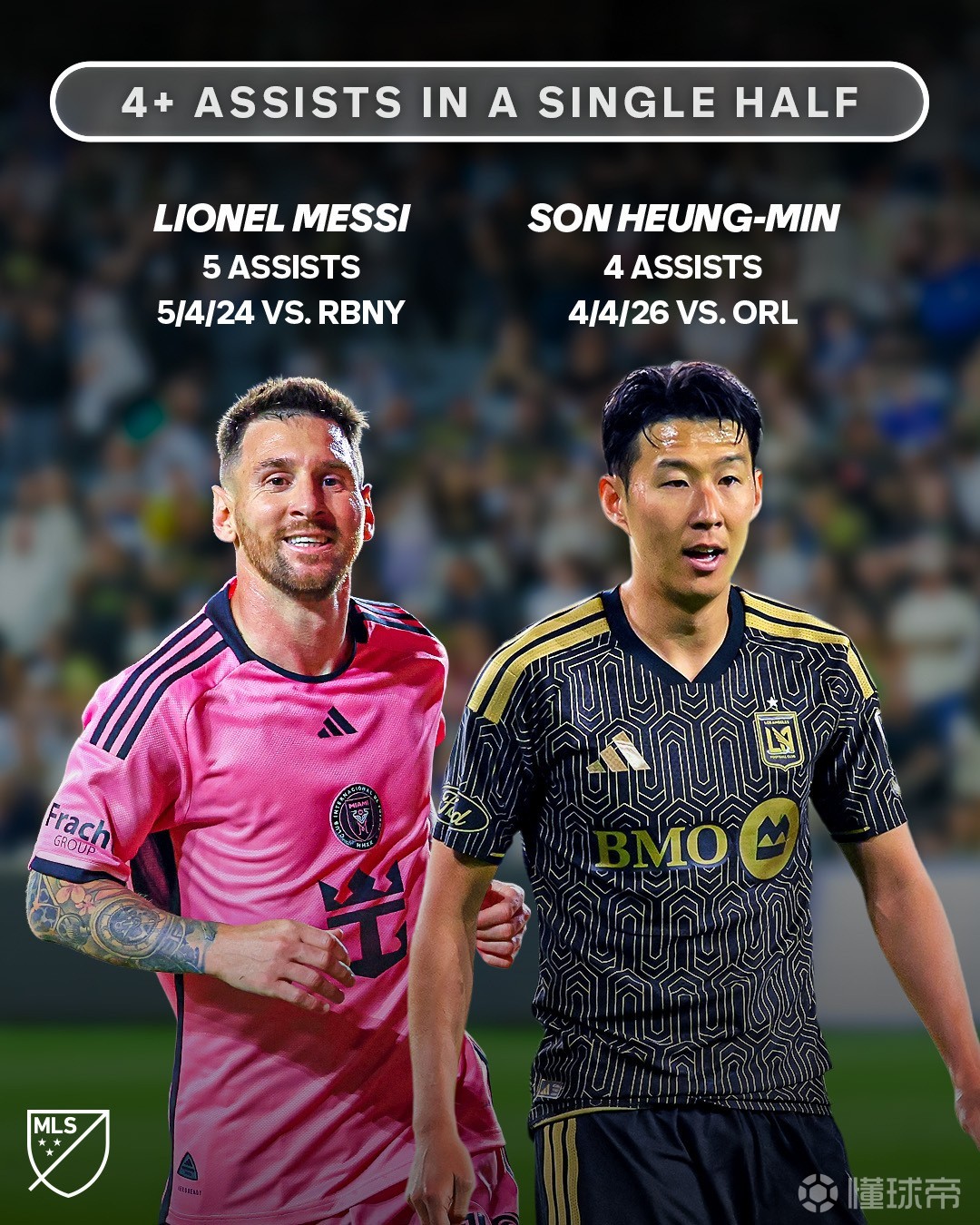 本场比赛,孙兴慜首发出场,上半场,孙兴慜送出4次助攻,据美职联官方统计,孙兴慜与梅西是美职联历史上仅有的两位能在半场送出四次及以上助攻的球员。