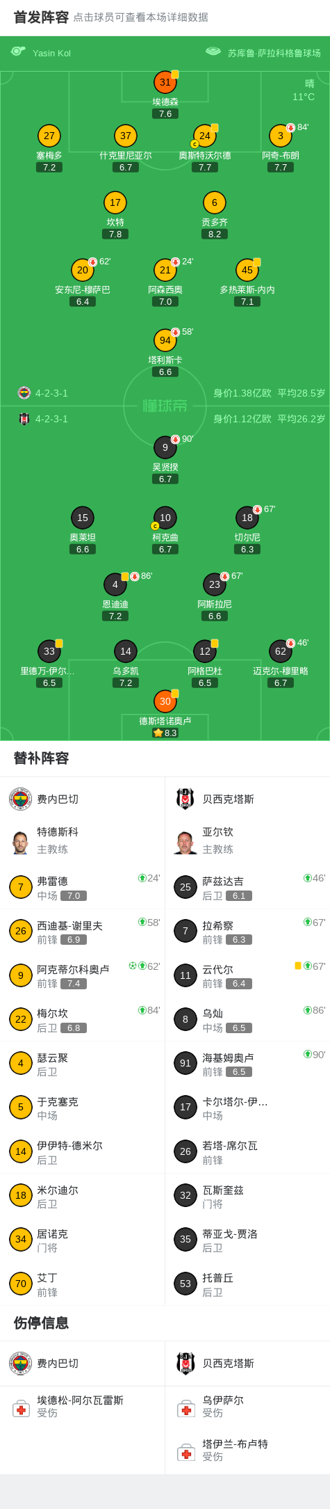 北京时间4月6日土耳其足球超级联赛 联赛 第28轮,费内巴切主场对阵贝西克塔斯。费内巴切阿克蒂尔科奥卢破门。最终比分费内巴切 1-0 贝西克塔斯。