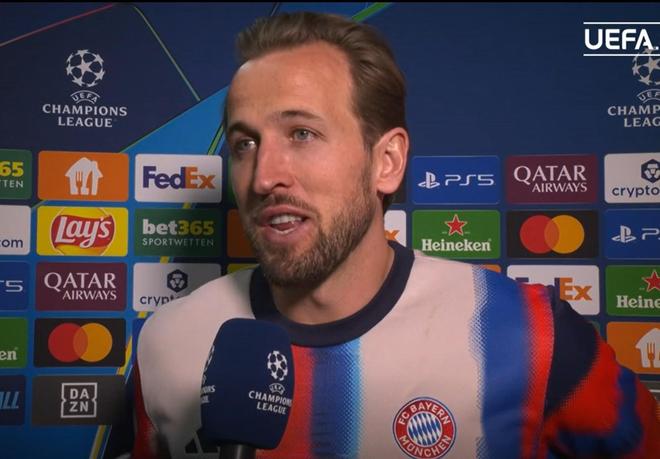 欧冠1/8决赛次回合,拜仁在主场4-1战胜亚特兰大,凯恩上演梅开二度。赛后,他接受了欧足联的官方采访。