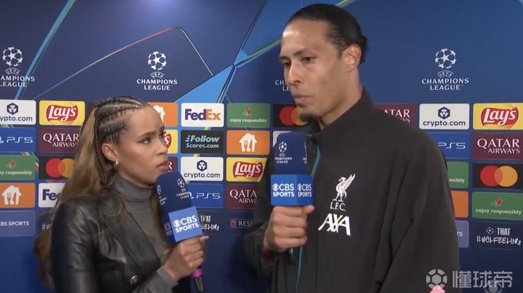 欧冠1/4决赛首回合客场0-2不敌巴黎圣日耳曼后,利物浦队长范戴克接受了CBS体育的采访。